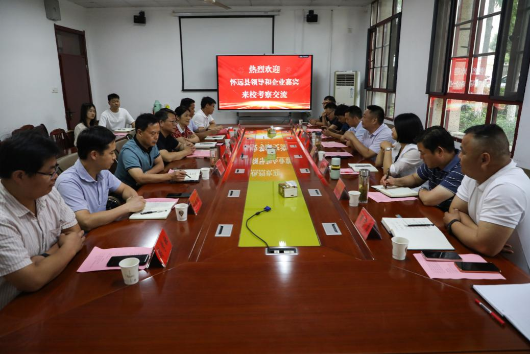 7月2日下午,怀远县人大常委会主任王五洲、怀远县副县长常春梅率县经开区、县科技局、县农业农村局、县人社局负责同志以及安徽博宠宠物用品公司董事长丁周守力、市场部经理周发展等,来校考察交流政产学研用合作事宜。校党委委员、副院长李升和,科研处处长陈丰,蚌埠市人大常委会委员、民进江南官方网站_江南(中国)股份有限公司,主委张菊,动物科学学院党委委员、副院长贺绍君,食品工程学院副院长郑海波等出席会议,会议由动物科学学院党委书记、副院长程斌主持。