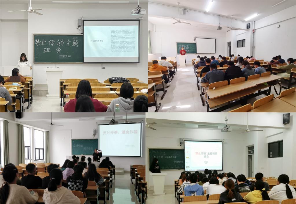 近日,各地大学生被诈骗案频发,为了增强大学生的安全防范意识,管理学院各新生班级积极展开防电信网络诈骗,防传销主题班会。