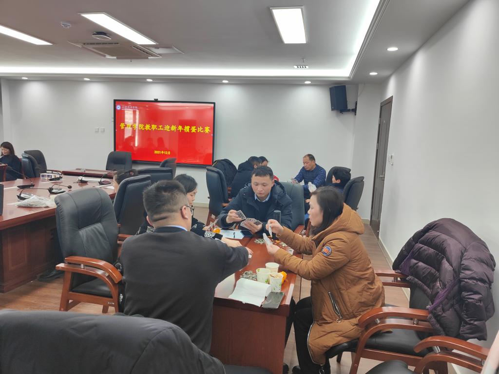 在辞旧迎新之际,为丰富教职工业余文化生活,展现学院教职工团结协作、奋勇争先的精神风貌,12月29日,管理学院分工会在龙湖校区西辅楼416室举办了迎新年教职工掼蛋比赛。广大教职工积极响应,共有10组选手参加比赛。