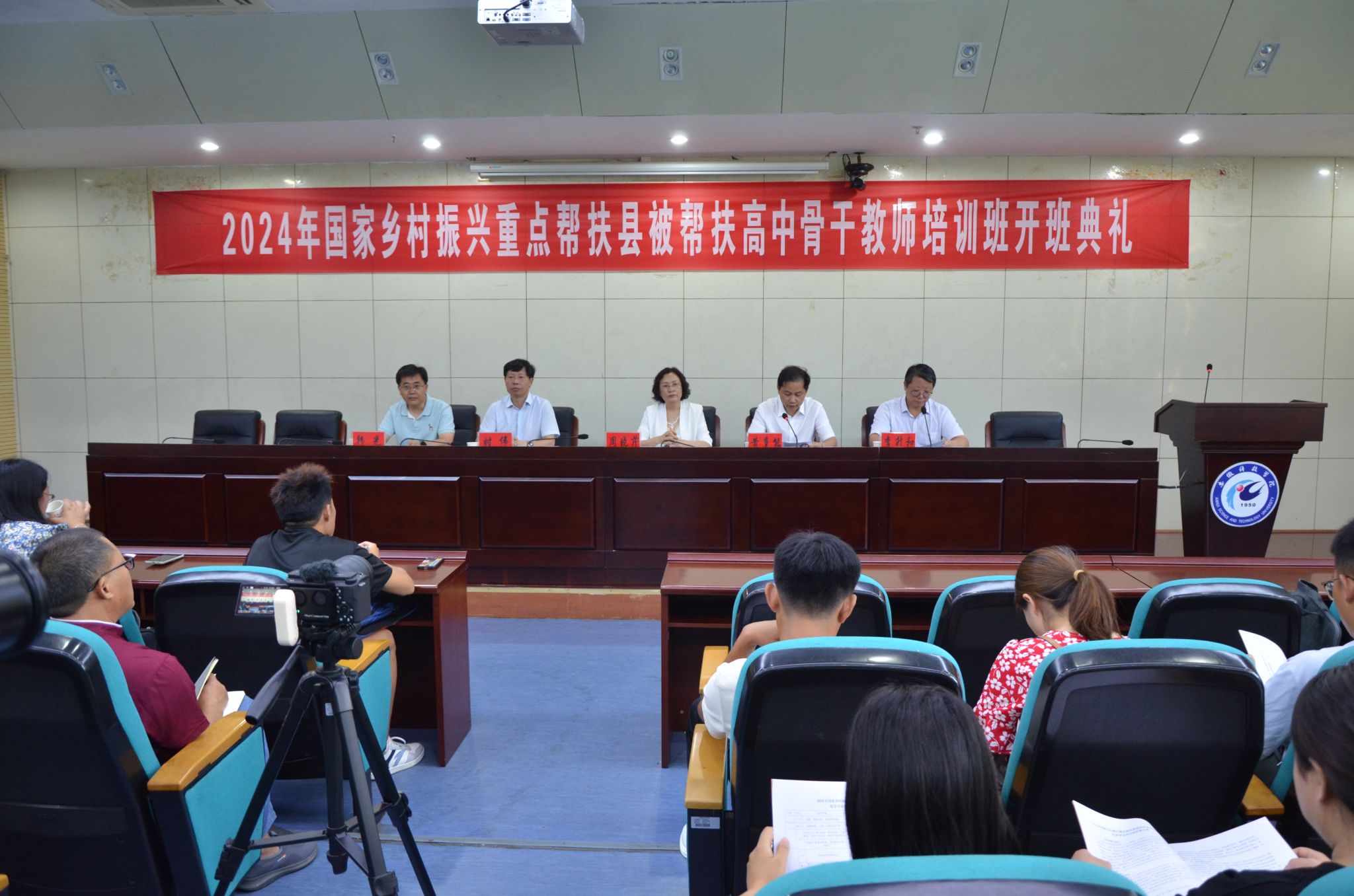 7月29日上午,2024年国家乡村振兴重点帮扶县被帮扶高中骨干教师培训班开班典礼在校新图书馆一楼报告厅举行,省教育厅二级巡视员周晓芹,省委组织部人才工作局副局长黄多能,校党委书记时伟,安徽省教育厅师资处副处长、二级调研员韩光等领导应邀出席,来自西部5省(区)的农学专业参训学员参加了本次开班典礼。开班典礼由校党委委员、副院长李升和主持。