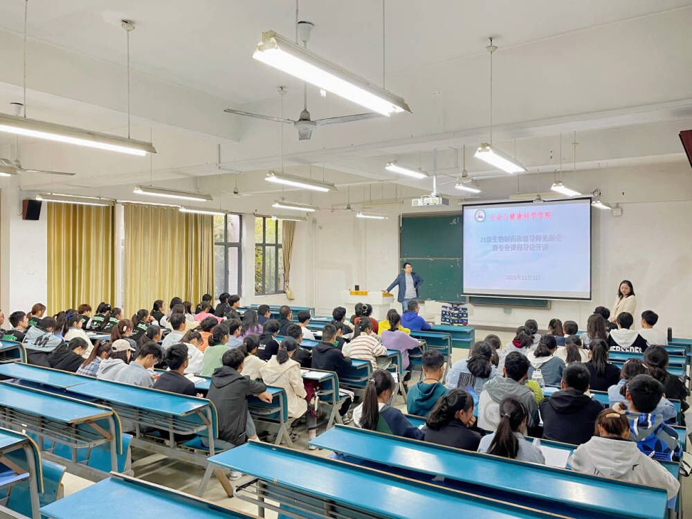 11月3日下午,生命与健康科学学院在新知楼B101举行2021生物制药专业导师见面会暨专业《课程导论》开讲。2021级生物制药3个班级专业导师汪雁博士、徐荣华博士、张维博士以及2021级生物制药90位新生参加了班级导师见面会。会议由生命与健康科学学院2021级生物制药专业辅导员邓艳萍主持。