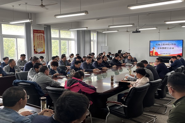 为深入贯彻“一底线两高地”工作理念,加快落实2023年党政工作要点,切实推动学院高质量发展,5月10日下午,机械工程学院召开五月份全体教职工大会,通报相关工作进展情况,部署近期重点工作任务。会议由学院党委书记胡振江主持。