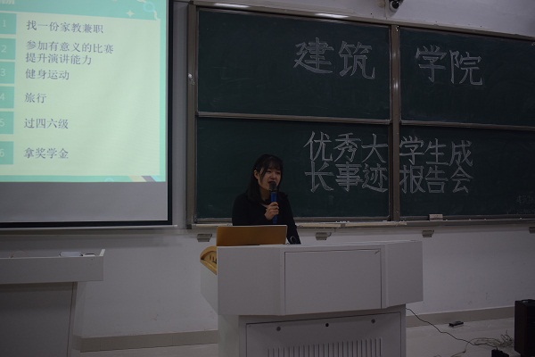 11月30日,建筑学院优秀大学生成长事迹报告会(风景园林、城乡规划专场)于致知楼A111举行。本次作报告的三位优秀学生分别是来自财经学院国际贸易182班的宋宁宁、管理学院市场营销182班的樊招娣和电气与电子工程学院电气工程及其自动化181班的张海潮,20级风景园林与城乡规划新生聆听了报告会。