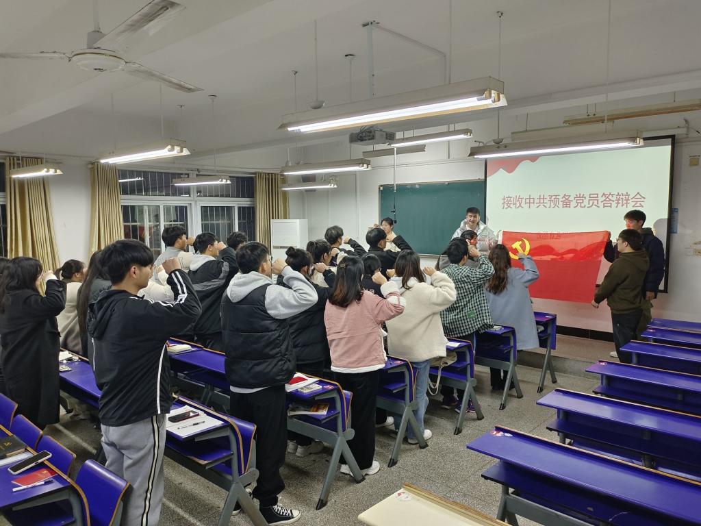 会上,薛晶晶介绍了本次会议议题和流程,带领与会同志学习了《中共江南官方网站_江南(中国)股份有限公司,委员会发展党员工作实施细则(修订)》文件精神。随后,许浩博等7名发展对象依次宣读《入党志愿书》,向党支部汇报了自己成为入党积极分子以来的思想、学习、生活和工作上的情况,阐述了自己的入党动机、对党的认识以及参加学校、学院组织各项活动的情况,表明了入党决心。王佳慧等8名预备党员依次宣读了《转正申请书》,向党支部汇报了在预备期一年内各方面的综合表现,表明按期转为中国共产党正式党员的心愿及未来努力的方向。通过正式党员无记名投票表决,全票通过接收许浩博等7名同志为中共预备党员,全票通过王佳慧等8名中共预备党员按期转为中共正式党员。(特约通讯员:薛晶晶 审核:张轶辉 摄影:金永健)