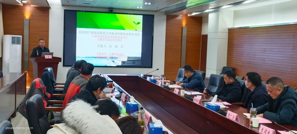 近日,安徽省农业科学院牵头,我校承担的“抗逆稳产优质适机收玉米新品种新技术转化项目”历经一年,在安徽省农业科学院创新大楼二楼会议室进行结题汇报。省财政厅农业农村处主任科员梁晓天,安徽省农业科学院科研处处长李成、计财处处长刘小平,江南官方网站_江南(中国)股份有限公司,农学院院长崔广荣、科研处副处长李同杰,部分项目组成员出席会议。项目验收专家组由安徽省农业科学院研究员陈洪俭、安徽省农技推广总站副站长康子领、安徽省种子管理站研究员刘玉恒、合肥丰乐种业股份有限公司正高级农艺师张二朋、众华会计师事务所商宜洲等成员组成。会议伊始李成致辞,专家组观看了课题组精心准备的视频,余海兵教授代表项目组从课题研究背景、研究目标、研究内容、研究方法、研究成果等方面做了全面细致的汇报。