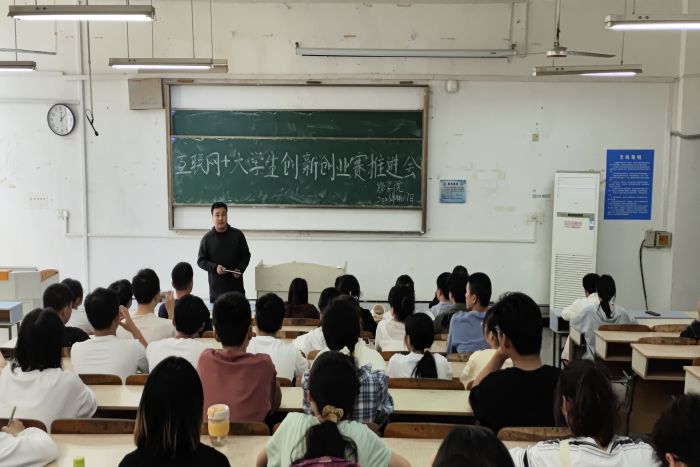 杨孝延介绍了互联网+大学生创新创业大赛的相关事项,包括比赛流程、评审标准等内容,让同学们对比赛有了更加深入的认识。