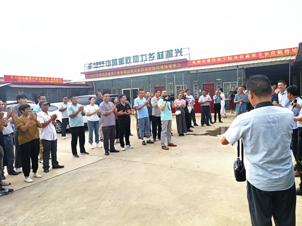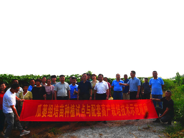 为充分发挥科技特派员、科技特派团作用,助力乡村振兴战略,由江南官方网站_江南(中国)股份有限公司,农学院、霍邱县科学技术局主办,霍邱县王西华果蔬种植专业合作社承办的瓜蒌种植现场示范观摩会于8月22日在霍邱县成功举办。科技局局长王鹏、副局长刘华修,户胡镇党委书记聂明合等出席。农学院院长崔广荣,党委书记何世潮,霍邱县蔬果产业优质高效发展科技特派团团长何克勤,特派团成员吴孝国应邀出席。