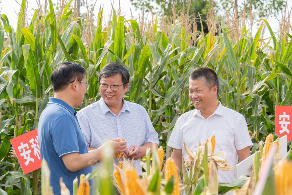 在全国上下喜迎党的二十大胜利召开之际,为推动玉米新品种新技术的应用,共同促进安徽省玉米产业的发展,9月22日,我校主办的安徽省玉米新品种新技术现场观摩会暨2022年安徽省农业科技成果转化应用专项项目“抗逆稳产优质适机收玉米新品种新技术转化项目”技术培训会在固镇县召开。我校党委委员、副院长李升和,蚌埠市政协副主席孟祥光,安徽省农业科学院科研处处长李成,固镇县政协副主席刘览,蚌埠市农业技术推广中心主任孙善军、副主任黄雨,固镇县农业农村局副局长马开响,农学院副院长李文阳,玉米科技创新团队负责人余海兵及团队成员,相关企业、农技人员及种植大户代表等100多人参加。