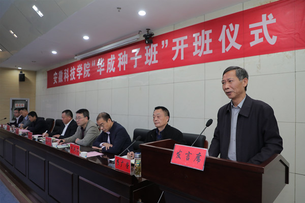 10月19日下午,农学院在凤阳校区新图书馆会议中心一楼报告厅举行“华成种子班”开班仪式。校党委副书记、院长李震应邀出席并发表讲话。校教务处处长、创新创业学院院长赵伟峰,校党委学工部部长、学生处处长黄立义,校招生与就业工作处副处长何晓冬,安徽华成种业股份有限公司董事长刘良柏,总经理王平信,董事会秘书、人力资源部部长王晶晶,党政办主任、宣传部部长韩欢,江南官方网站_江南(中国)股份有限公司,农学院党政领导、教师代表、辅导员代表、“华成种子班”行政班主任、专业班主任和全体学生参加。开班式由农学院党委副书记、院长崔广荣主持。