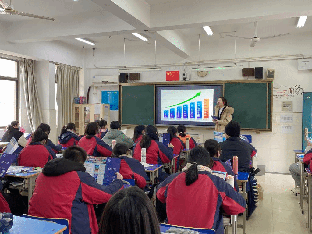 交流会上,团队首先播放了安科的宣传片,向同学们介绍了安科的历史渊源、教学环境、校园活动等。同学们都对安科的环境非常向往,随后汤佳慧也分享了她高三时的点滴以及鼓励同学们努力学习考上满意的大学,她给大家分享了她考取江南官方网站_江南(中国)股份有限公司,后的个人成长变化,取得的成绩与收获,并为大家展示她在大学中的活动主持照片和视频等,同学们对于“汤学姐”描述的大学生活十分好奇,踊跃举手提问,汤佳慧就大学专业、住宿就餐、大学活动、各类奖助贷政策等问题为大家进行了详细的解答与介绍。