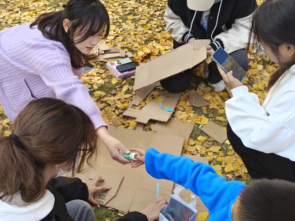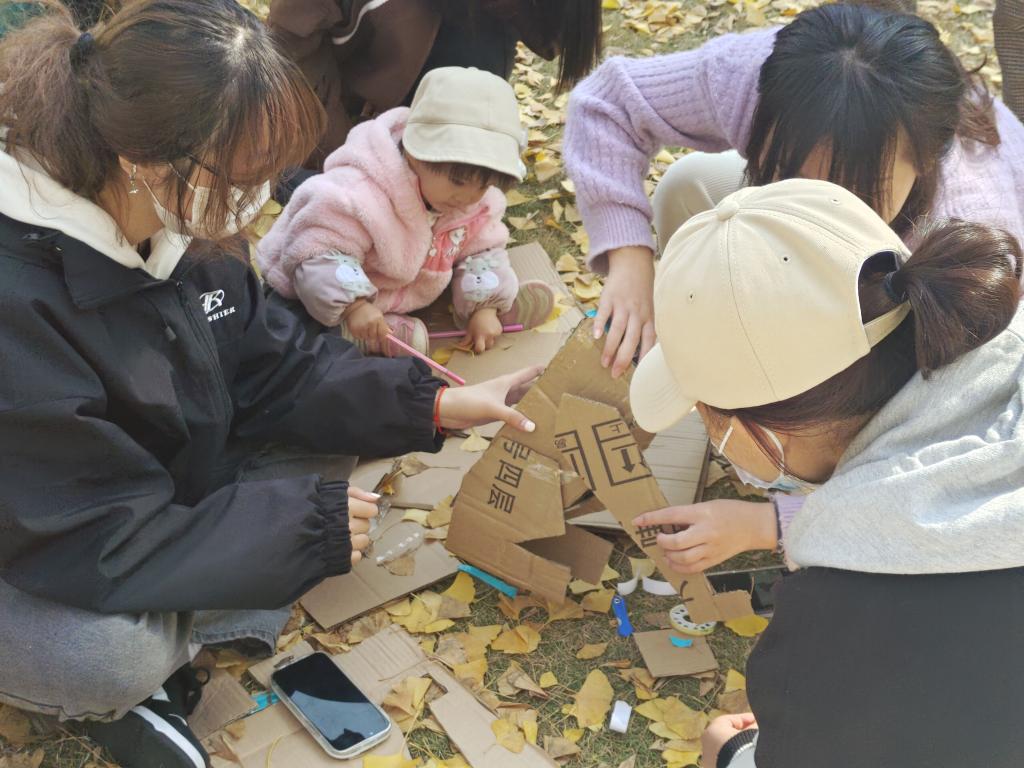 秋天踩着窸窣的银杏叶缓缓踱步,牵起微风的手与落叶翩然起舞。参与活动的同学在金黄银杏叶装饰的草地上发挥自己的奇思妙想,制作属于自己的宠物。天真的孩童在草地上奔跑嬉戏,为活动增加了些许童趣。