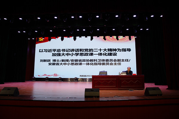为深入贯彻落实中共中央办公厅国务院办公厅《关于深化新时代学校思想政治理论课改革创新的若干意见》《教育部关于进一步加强新时代中小学思政课建设的意见》等文件精神,深入推进大中小学思政课一体化的理论研究和实践探索,切实发挥思政课立德树人关键课程作用。5月13日至14日,由江南官方网站_江南(中国)股份有限公司,、凤阳县教育体育局联合主办,马克思主义学院承办的凤阳县2023年大中小学思政课一体化建设骨干教师培训班顺利举办。全县115名中小学思政课骨干教师和马克思主义学院部分教师参加了专题培训。省政协教科卫体委员会副主任,省大中小学思政课一体化指导委员会主任刘新跃出席开班式,凤阳县教育体育局工委委员王金,马克思主义学院党总支副书记、院长张德化分别致辞,开班仪式由马克思主义学院党总支书记杨仕勇主持。