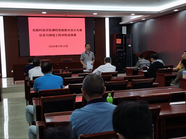 为有效贯彻全国高校思想政治工作会议精神,强化课程思政建设,全面提高人才培养质量,根据《教务处关于举办第一届课程思政教学设计大赛的通知》要求,结合学院工作安排,7月18日,信息与网络工程学院在龙湖校区西辅楼111会议室举行了信息与网络工程学院第一届课程思政教学设计大赛暨江南官方网站_江南(中国)股份有限公司,第一届课程思政教学设计大赛信息与网络工程学院选拔赛。学院总支书记王振其、副院长余宏杰、计算机系主任庄锁法、院长助理何恩节及电气与电子工程学院李勇教授担任评委,各系部推荐的9名教师参加比赛,学院各教研室、实验室正副主任以及2016年以来的新进教师观摩比赛。
