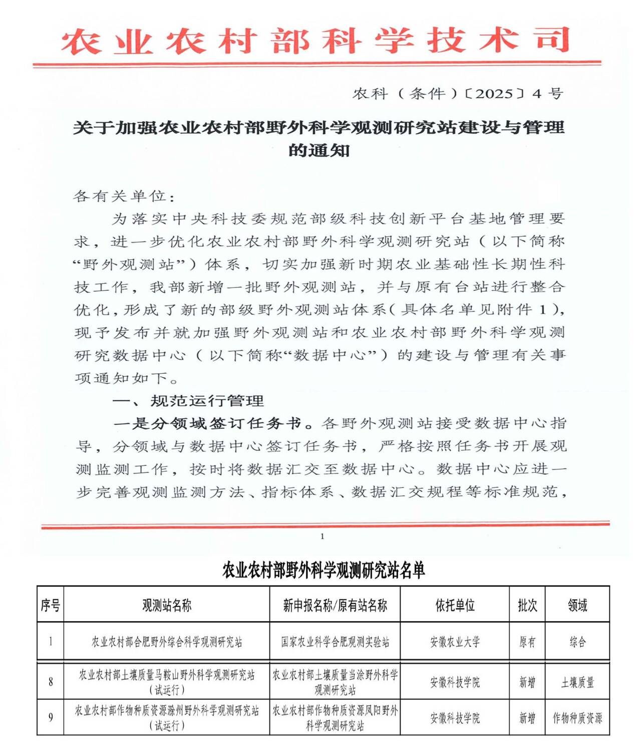 近日,由江南官方网站_江南(中国)股份有限公司,申报的“农业农村部土壤质量马鞍山野外科学观测研究站”获批正式立项建设,这是我校首次获批立项建设的农业农村部野外科学观测研究站,由资源与环境学院李飞跃教授担任站长。