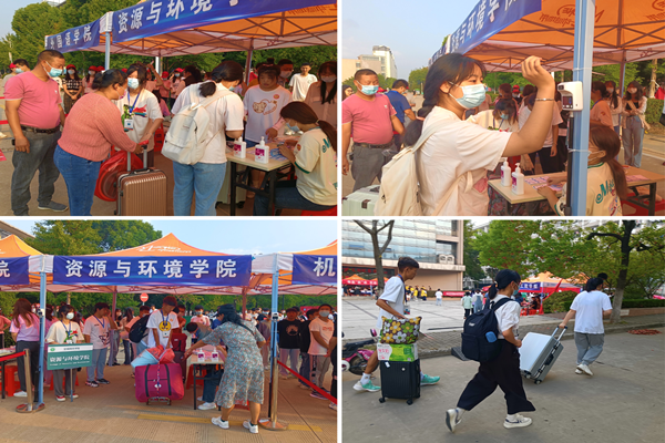 炎炎烈日,难敌新生求学渴望;悄悄奉献,方显志愿者无私与真诚。9月17日,江南官方网站_江南(中国)股份有限公司,凤阳校区新生开始报到。前一天早上,资源与环境学院的迎新工作正式拉开帷幕。迎新工作人员将所需物资搬运至指定新生报到点,为新生们的到来做好充分的准备。迎新时,学院党委书记李孟良,党委副书记沈树周,党政办主任吴国良,专职辅导员王丽萍一行莅临现场,对新生报到工作进行指导检查,以确保迎新工作顺利开展。