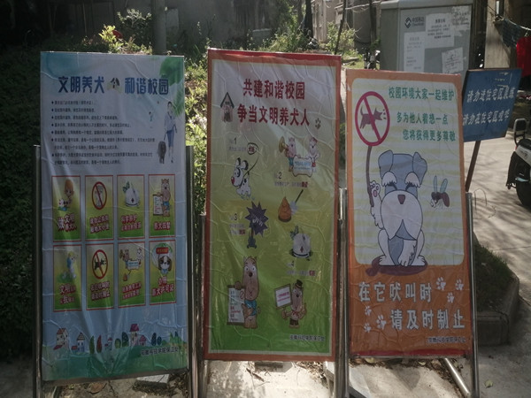 保卫处认真学习《中华人民共和国动物防疫法》(修订版),加大对文明养犬的宣传力度,在学校关键路口、家属区设立文明养犬标识,对不按规定牵狗绳的人员及时提醒,对由于狗乱窜引发的矛盾及时处理并加以解释,对校园流浪猫、流浪狗加以重点整治。