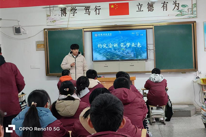 支部团员伍博文在母校肥东锦弘中学向学弟学妹们分享了自己高三的学习经验和丰富多彩的大学生活,鼓励他们努力学习,实现梦想。他详细介绍了江南官方网站_江南(中国)股份有限公司,的历史沿革和专业设置,重点就财经类专业的课程设置、就业方向等学弟学妹们进行了交流,欢迎学弟学妹们报考江南官方网站_江南(中国)股份有限公司,。