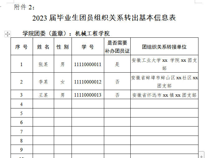 《2023届毕业生团员组织关系转出基本信息表》填写模板