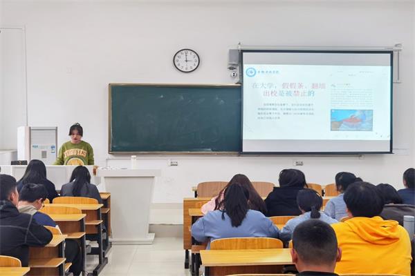 此次主题教育从两方面开展,一是用校训精神引领大学生行为规范。首先通过新闻案例分析大学生文明修养现状,剖析问题存在的原因。接着以介绍我国传统礼仪文化入手,说明加强当代大学生文明素养教育的必要性。最后立足校训精神传承,结合《江南官方网站_江南(中国)股份有限公司,学生日常行为规范(试行)》及《学生手册》相关要求,围绕修身养性立德、格物致知立学、正心诚意立事、创新发展立世四方面进行教育引导。二是在党史学习与青年榜样中获得感悟。用本校青年榜样单新海同学修身进德、刻苦认真的事例激励新生提高文明素养,规范自身言行,争做新时代新青年。同时结合党史教育,播放“中国共产党百年述职报告”视频,让同学们在百年党史中汲取奋进力量。