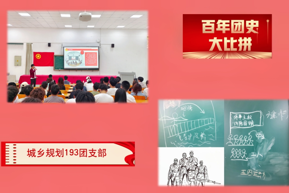 自“百年团史大比拼”开展以来,学院各团支部围绕中国共青团的百年光辉历程,结合团支部自身优势,开展了各具特色的团史学习教育。有的开展团史知识竞赛,有的开展了在世界读书日分享团学读物,有的结合专业特长进行团史“绘图接龙”,有的录制《战“疫”——共青团员的中坚》视频等,它们各具特色,将团史学习演绎成学生热于倾听、乐于表达的思政课,让红色教育在青年学生中“活”起来、“聚”起来、“动”起来。活动现场,城乡规划212、青年志愿者协会、城乡规划201、学生会、城乡规划193团支部进行分享交流。