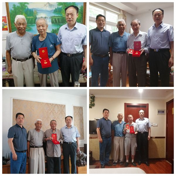 6月27-28日,在书记时乾带领下,离退休党总支赴合肥、南京等地走访慰问王征、江正西、方启荣、邹叔和等老党员,6月29日走访慰问居住在校内和凤阳身体不便的李士荣、张振环、周家明等老党员,6月30日上午陪同蒋德勤书记、李震院长、李升和副院长等慰问高松干等老党员。每到一处,领导们和老党员亲切交谈,为他们颁发“光荣在党50年”纪念章,向他们致以诚挚问候和崇高敬意,感谢他们为祖国建设、学校教育事业发展做的贡献。老党员中,党龄最长的70年,最短的51年,有退休工人、退伍军人、副厅级以上领导、老教授等。在庄严的颁发仪式中,老党员们深深地感受到了党组织给予的温暖和关心。