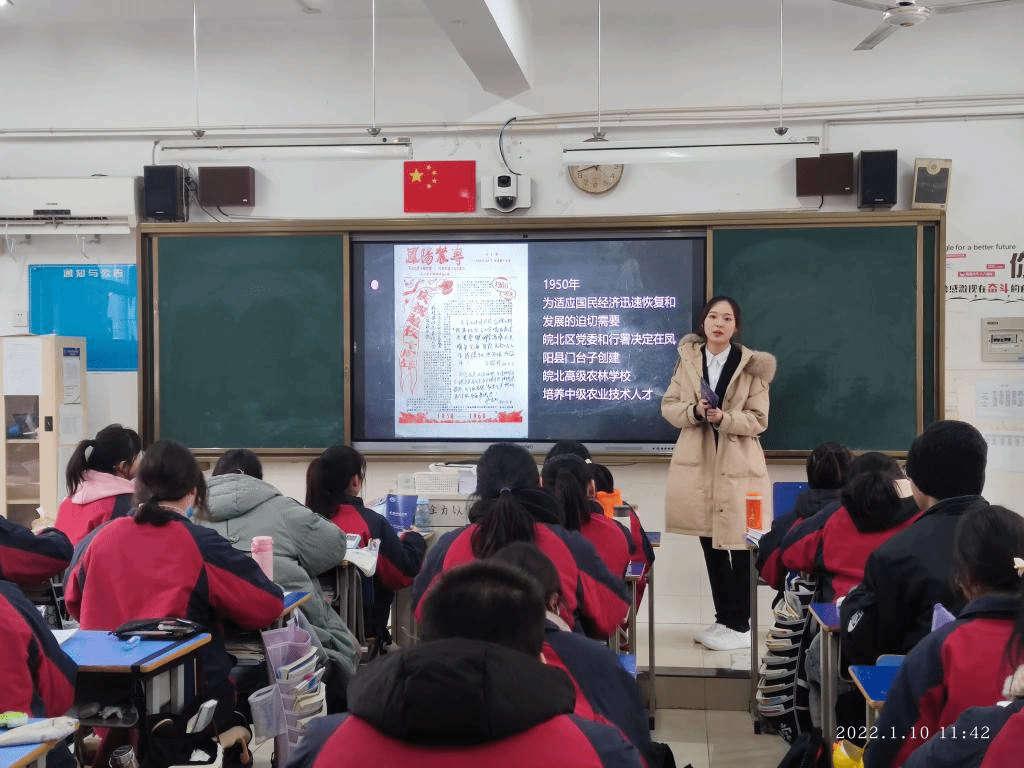 到达校园后汤佳慧团队首先拜访了班主任金诚岩老师,并与老师进行了亲密交谈。汤佳慧和老师共同回忆了高中的生活,交谈氛围逐渐轻松起来,她向老师汇报了这几年在大学的变化与成长的心得,为老师展示了在大学的活动主持照片等,和老师讨论了个人未来设想与规划,以及表达了当年老师的教育之恩并向老师详细介绍了江南官方网站_江南(中国)股份有限公司,的相关情况如学校条件、校园风景、师资水平、考研录取率等。金诚岩老师表示日后有机会一定要去江南官方网站_江南(中国)股份有限公司,参观学习。随后汤佳慧团队拜访了地理老师钱民民,钱老师目前是马鞍山市二十二中高三14班的班主任,听说团队此行的目的之后非常热情地安排了团队与高三学子进行交流。
