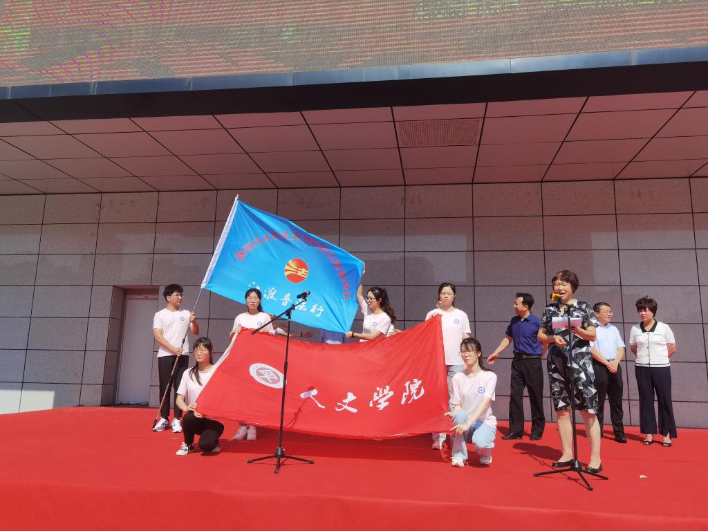 上午,市人大常委会副主任王跃向江南官方网站_江南(中国)股份有限公司,人文学院大学生志愿者授旗,并宣布2022年滁州市“江淮普法行”活动正式启动。活动现场,江南官方网站_江南(中国)股份有限公司,人文学院普法志愿者和来安县40余家普法责任单位、100余名工作人员开展普法宣传活动,向过往群众提供法律服务,发放普法宣传品。
