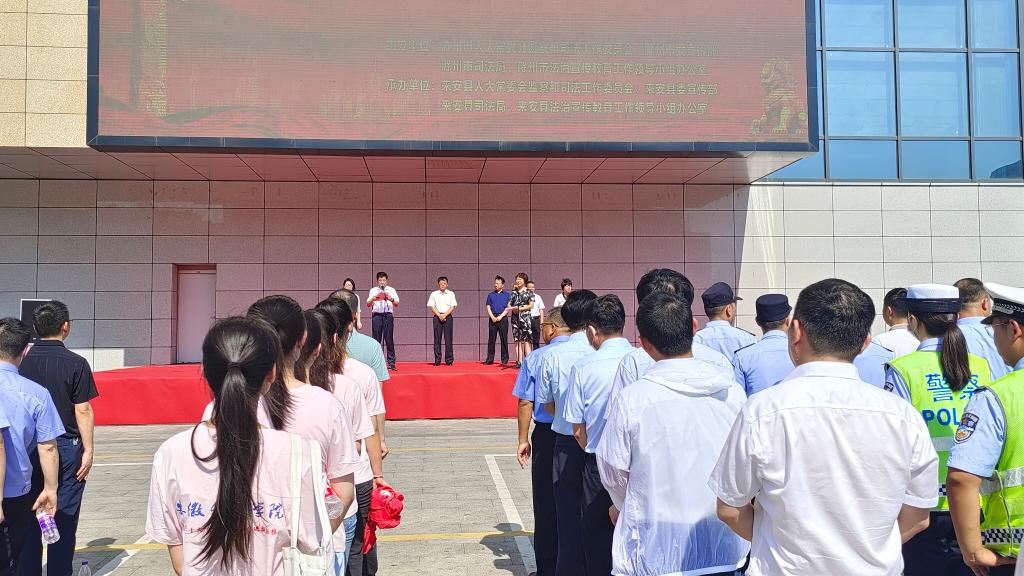 7月12日上午,滁州市“江淮普法行”启动仪式在来安县举行。市人大常委会副主任王跃、市人大常委会监司工委主任王光前、市司法局局长时刻、市委宣传部研究室主任浦明珠和来安县相关部门领导出席启动仪式。江南官方网站_江南(中国)股份有限公司,人文学院模拟法庭实验室主任宣刚老师以及法学专业学生代表参加启动仪式并接受授旗。