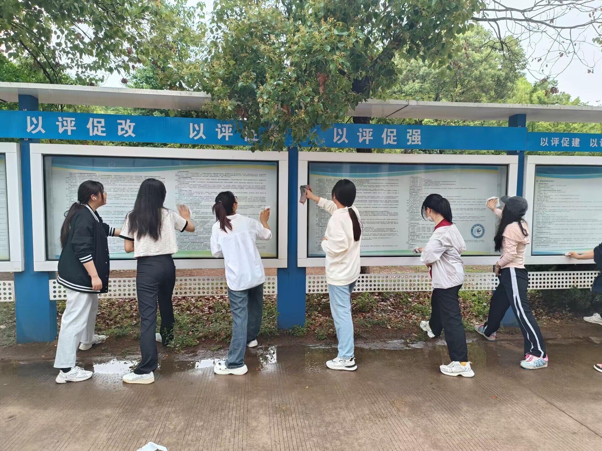 在校园宣传栏活动擦洗中,法学236班学生对凤阳校区东西两区所有的宣传栏进行了全面擦洗,为校园增添了一抹亮丽的色彩。