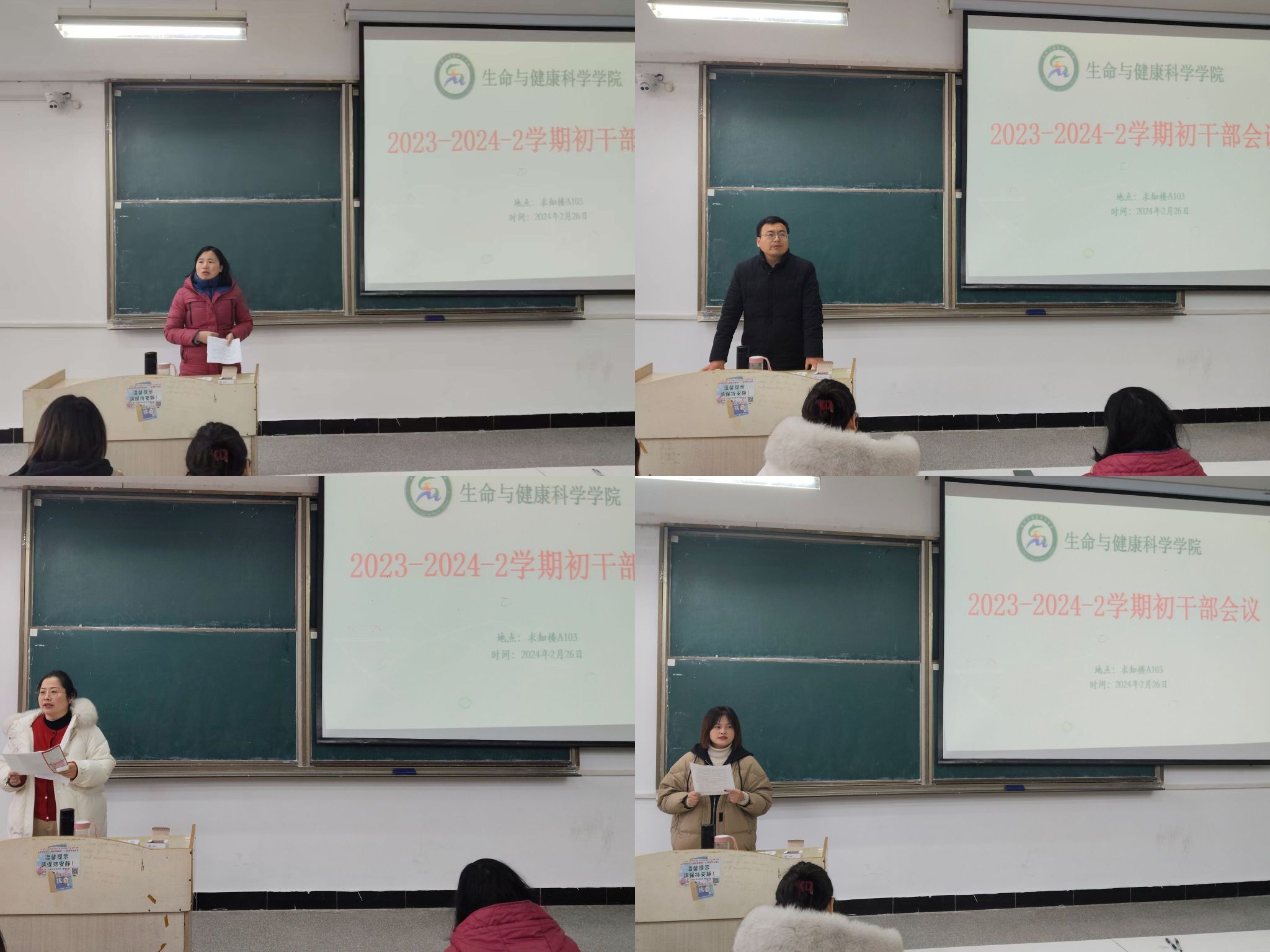 为切实推进新学期学生工作有序开展,强化学生干部责任意识,2月26日中午,生命与健康科学学院于求知楼A103教室召开期初学生干部工作会议。学院专职辅导员,学生团体主要负责人及各班级主要学生干部参加会议。会议由正科级辅导员刘国祥主持。