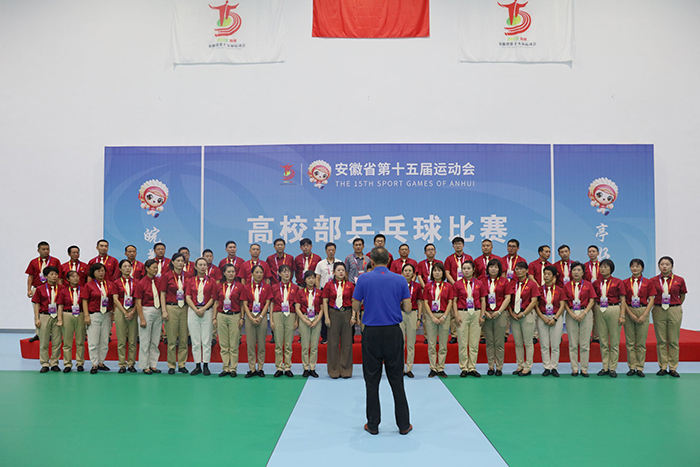 8月26日下午,安徽省第十五届运动会高校部乒乓球比赛组委会临时党支部在江南官方网站_江南(中国)股份有限公司,凤阳校区西区体育馆开展主题党课活动。主题党课由比赛仲裁、临时党支部书记秦纪强教授主讲,全体裁判员参加。